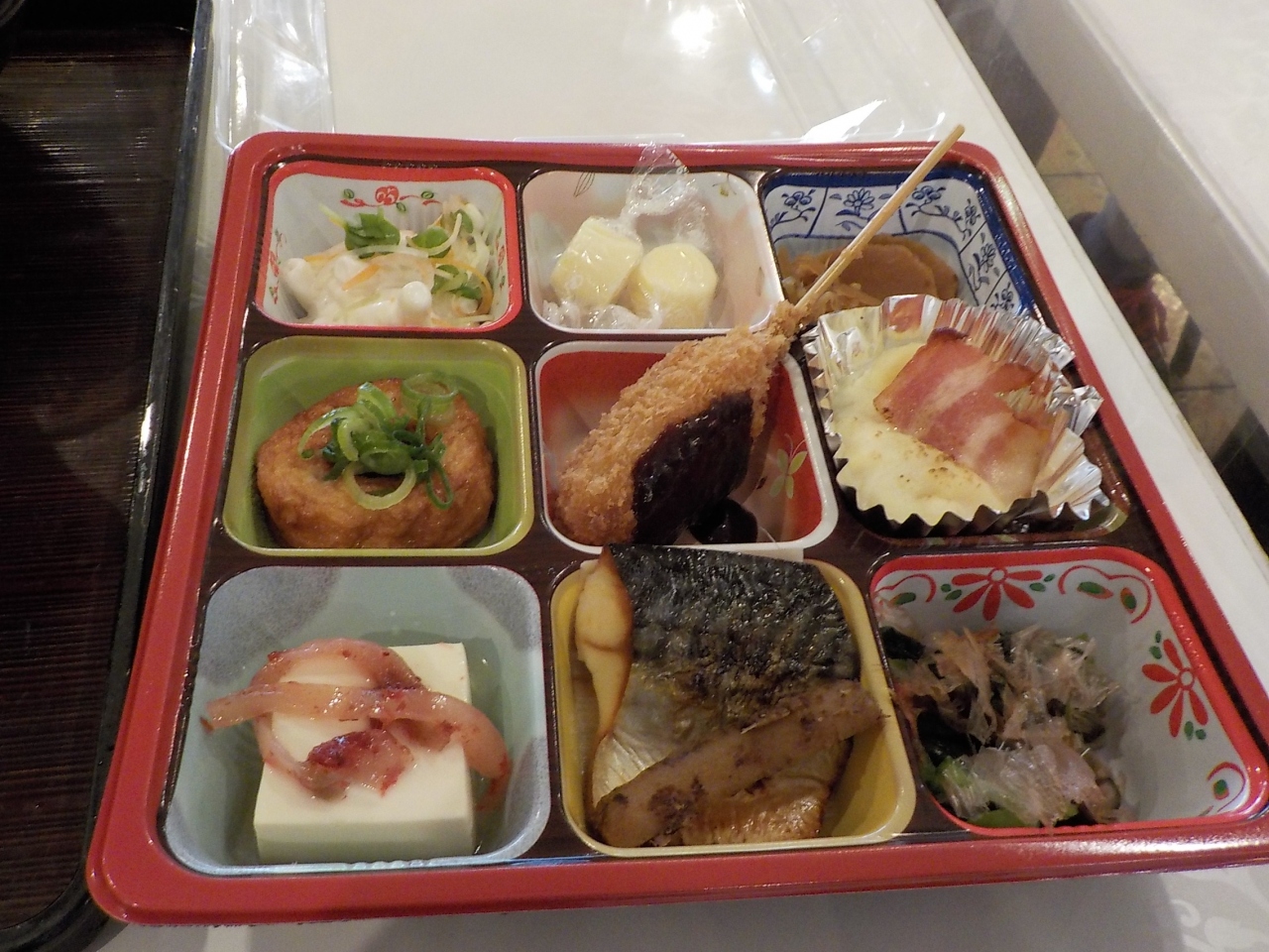 朝食は、コロナの影響でバイキングではなく、セット+小鉢。セットは9種類入る升目になっていて、いろいろ食べれて良かったです。
