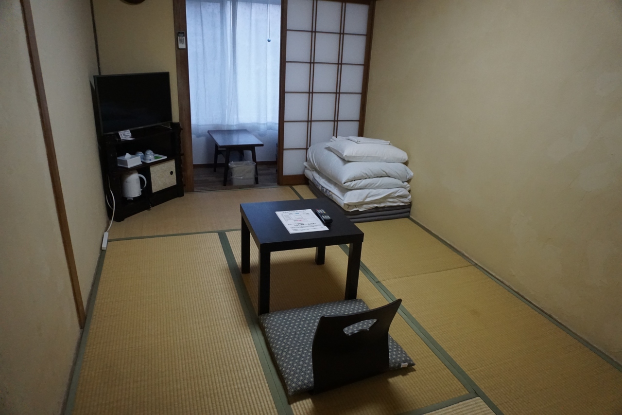 ただ、やっぱり安宿は安宿かな。玄関からして、全体がちょっと狭くて、ゆったり感は望めません。まあ、粗末な和室でしたけど、寝るだけならOKといった感じです。ただ、市内のホテルだけに、受付の応対はしっかりしていると思います。