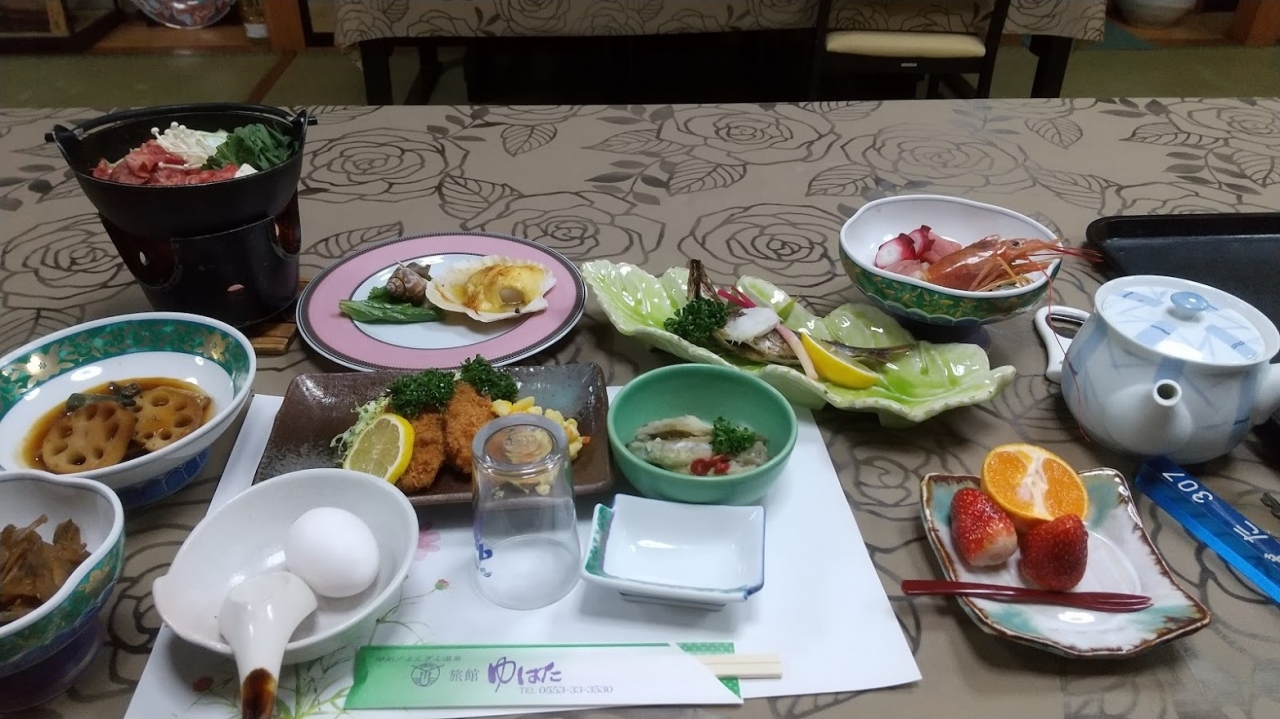 食事は朝夕とも品数多数でびっくり。食べきれないほどの量でびっくり。