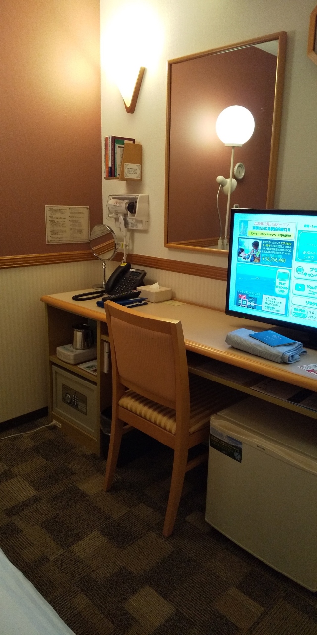 GOToで4100円位でした。お部屋は狭くなく、新しくはないものの掃除綺麗にされてました。女性はクレンジングとかのセットが必要だったらフロント横から持っていけました。自販機は1階にしかなく種類少なめです。ウォーターサーバーがあって紙コップでお部屋に持っていけます。無料の朝食はお弁当みたいにパック積めされてました。味噌汁は紙コップでコーヒーも紙コップです。朝食担当の女性もフロントの女性もとても感じが良かったです。