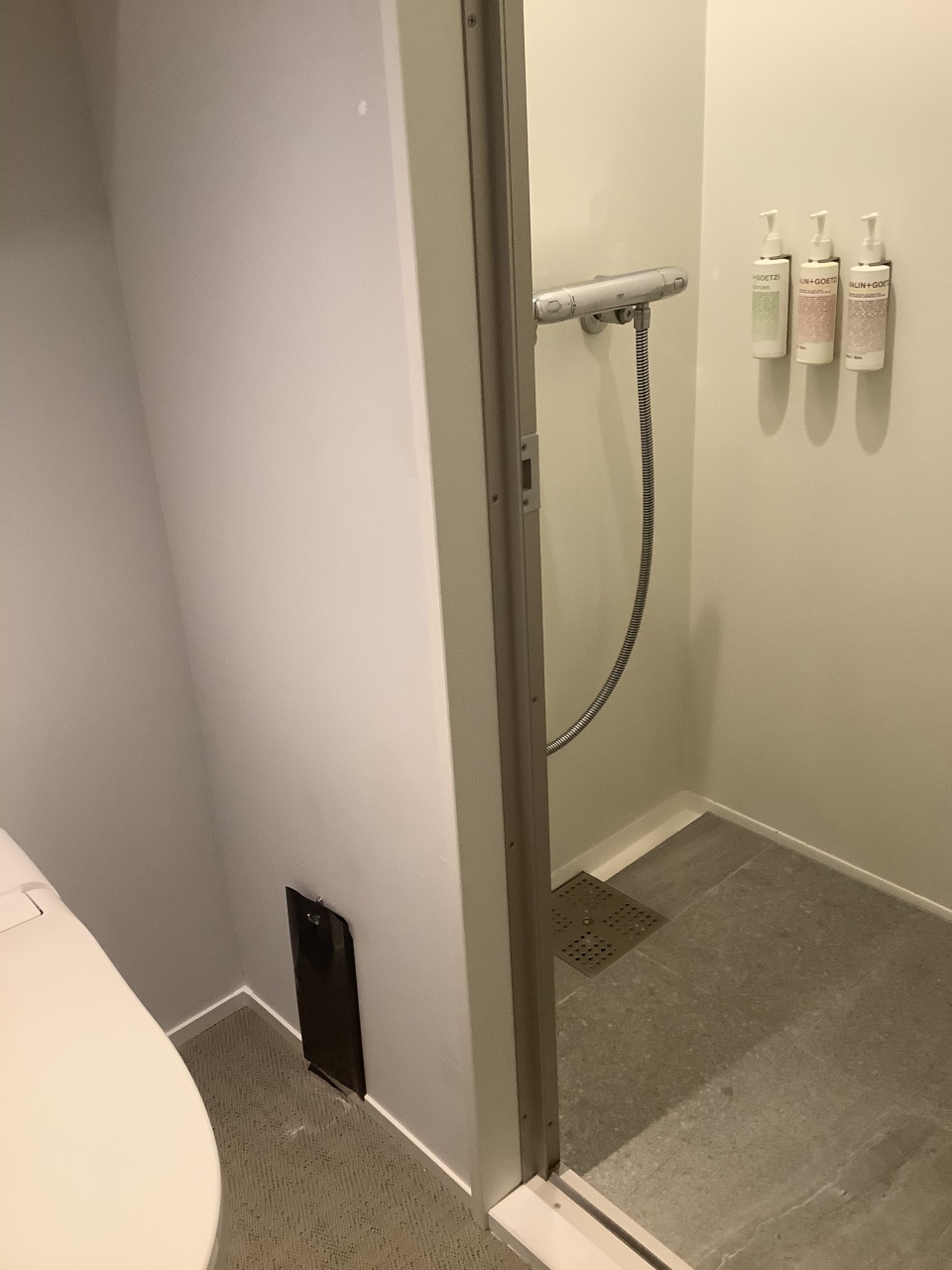 新しい感じでおしゃれなホテルです。ベットサイドの枕元左右にコンセントとUSBの差込口があったり、トイレは自動で流れました。バスタブはなくシャワーのみ。