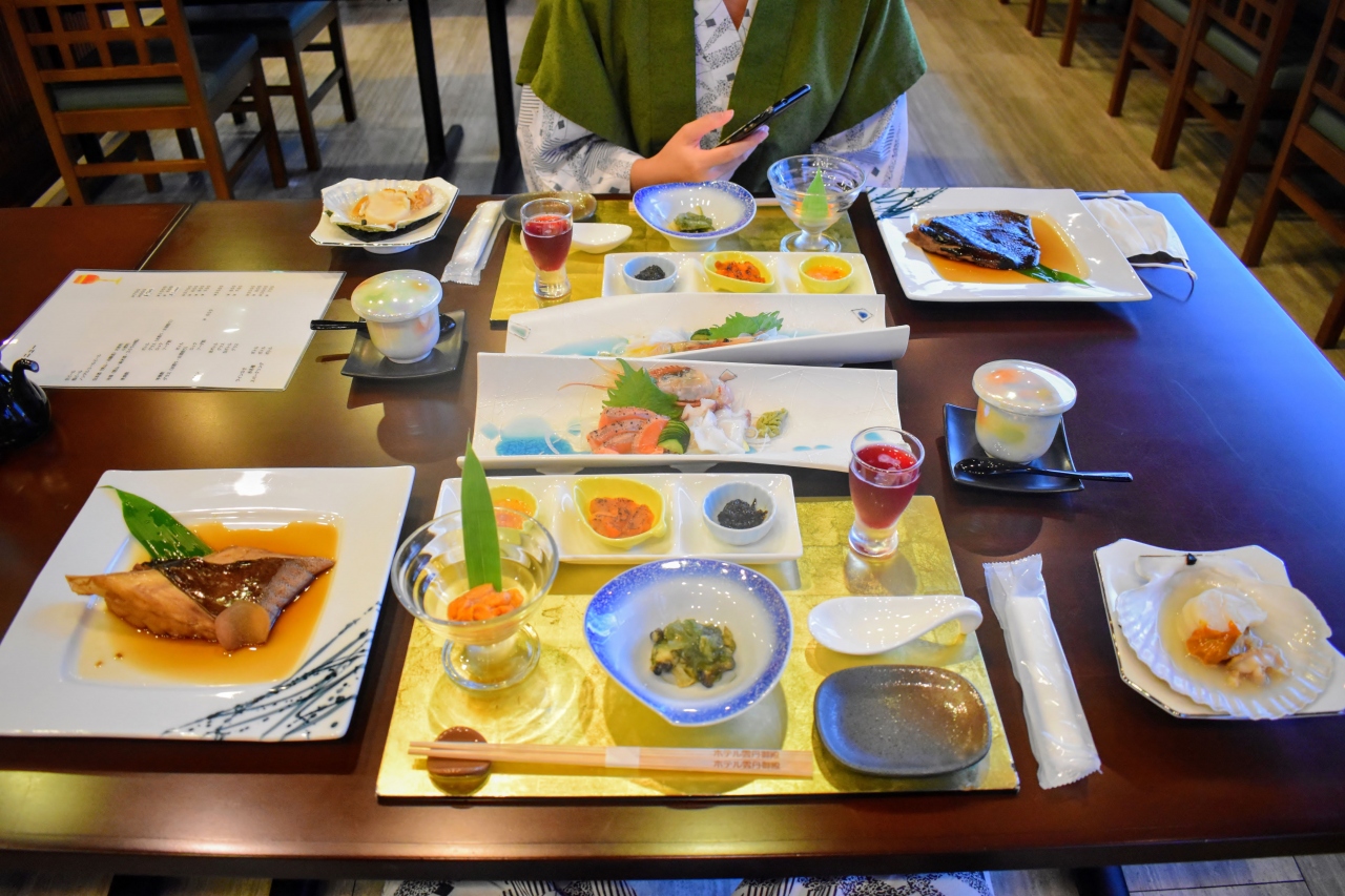 しかし夕食は雲丹を主とした地産地消的料理(すべて地産地消ではないですけど)は美味ですし、大浴場は残念ながら温泉ではないですが利尻山高級昆布を浮かべて出汁(?)を取っているお風呂。そして部屋からのペシ岬越しに沈む夕陽は必見。