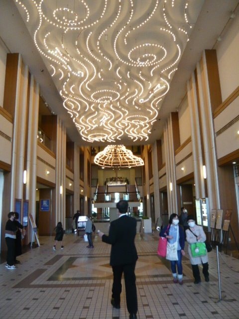 ロイヤルパインズホテルの1階フロアーです。シャンデリアが豪華