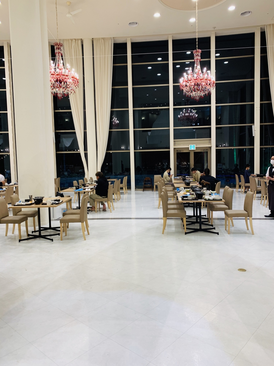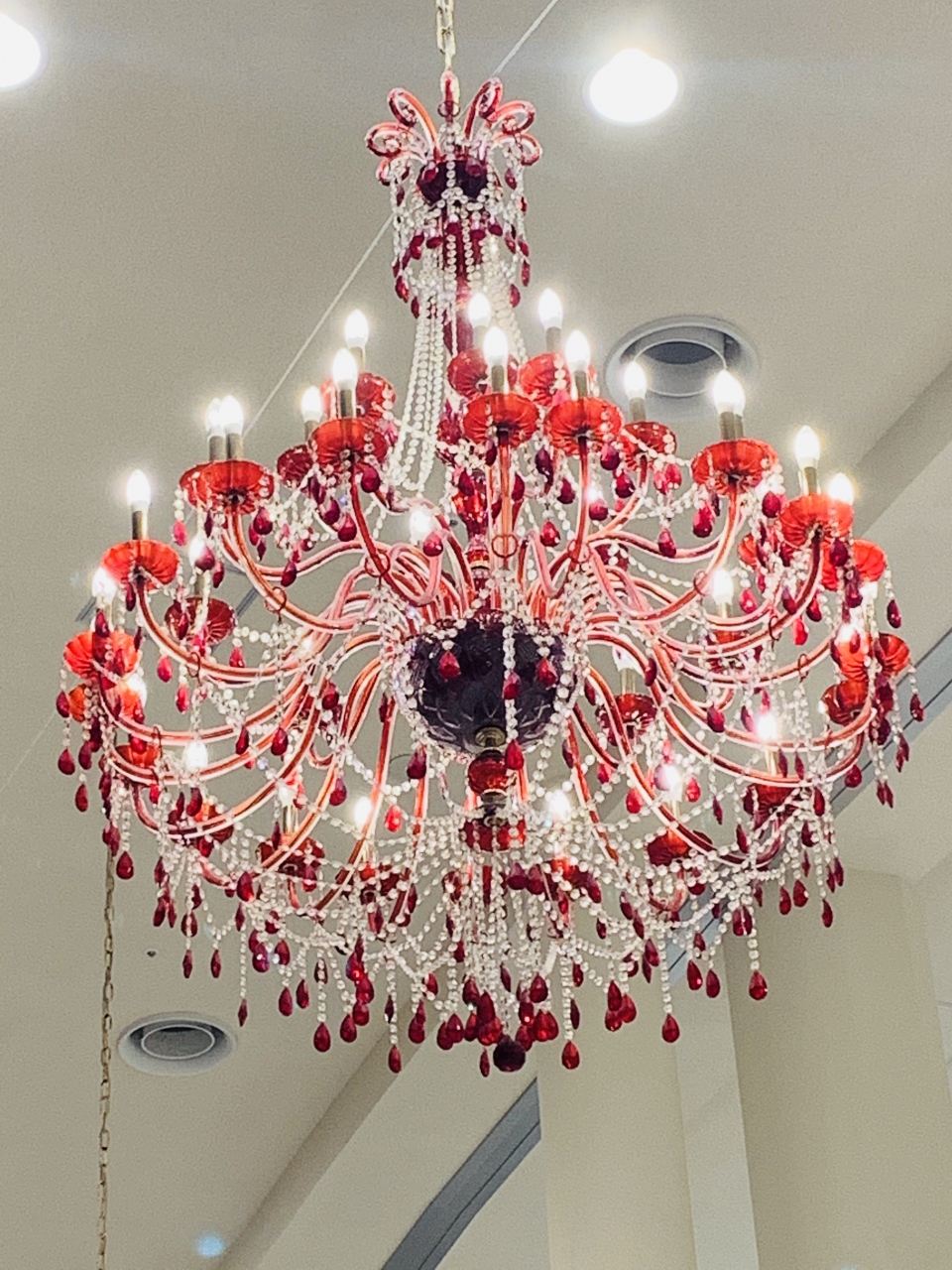 レストランの赤いシャンデリアが ゴージャスでした