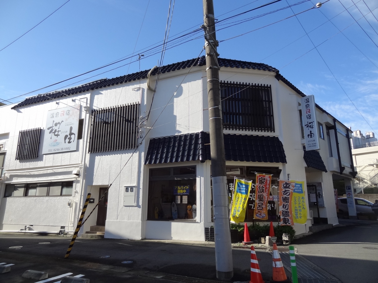 駅から350m/平たい道を歩いて10分かからないところに〈温泉民宿 桜由〉はありました。