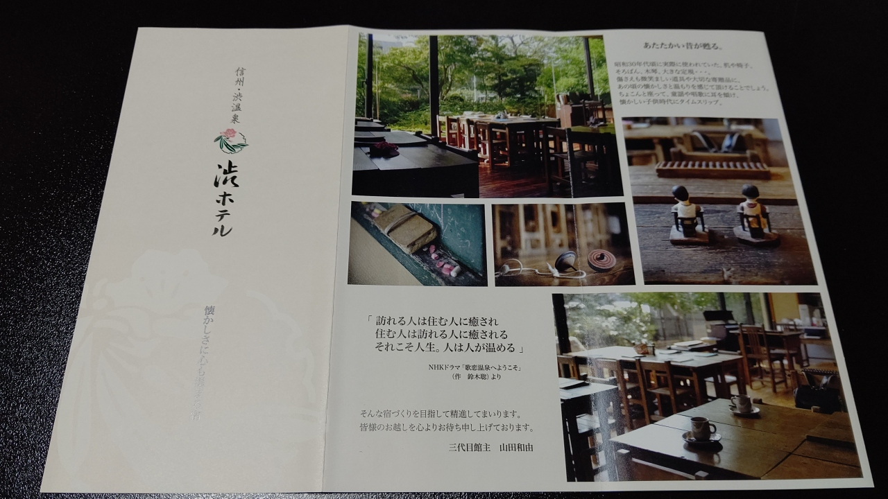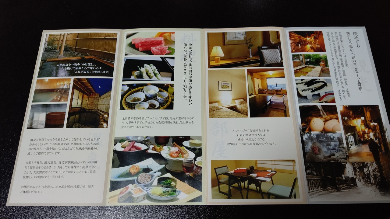 渋温泉街の入口近くにあるホテルです。温泉街の他の旅館のように狭い路地沿いの立地ではなく、お宿は川沿いなので道幅も広く、車の出入りはしやすいです。