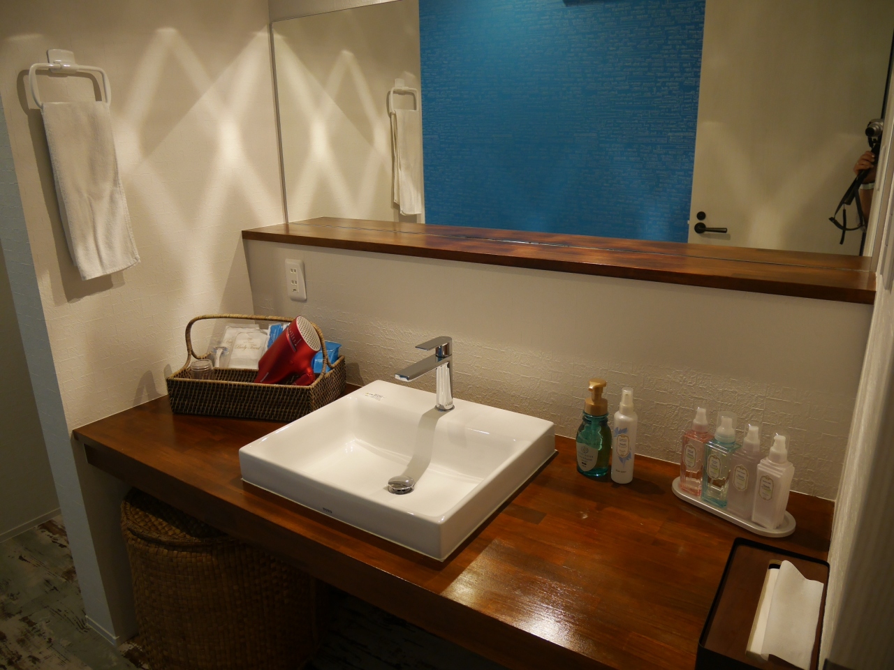 おそらく奥さまが選ばれたのでしょう、女性にうれしいアメニティ。ドライヤー・空気清浄機などの備品、シンクなどの什器も、おしゃれで使いやすいものが揃えられています。