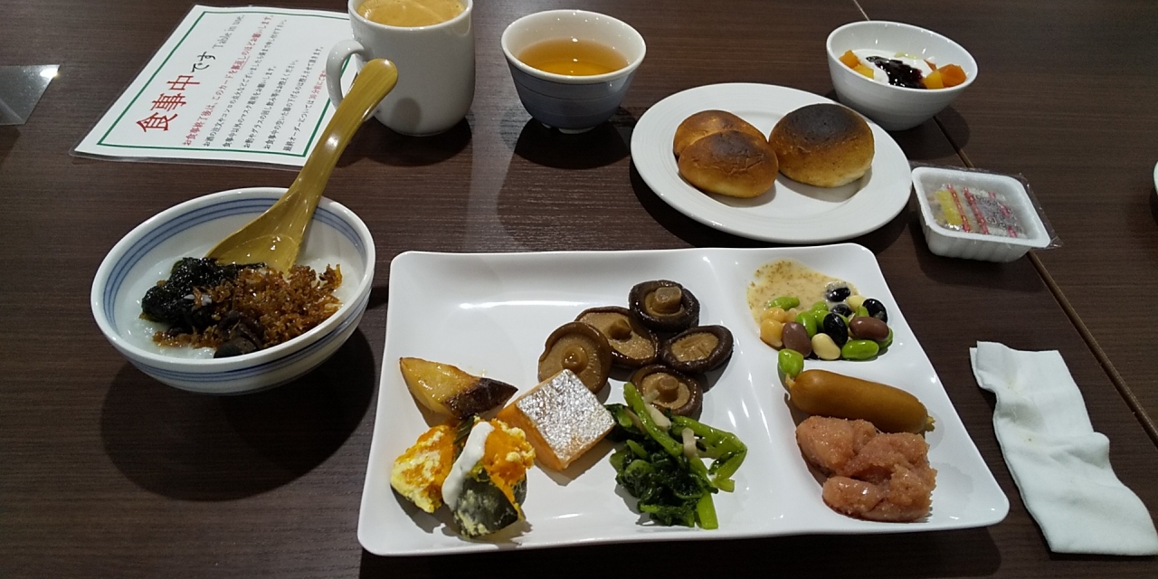 食事は特別食を選ばない限り、夕食も朝食もバイキング。種類は少なめで、あまり期待しないほうがいい。夕食は19:30から、朝食は7:00からで、他の宿と違って絶食時間が少ないのがよかった。