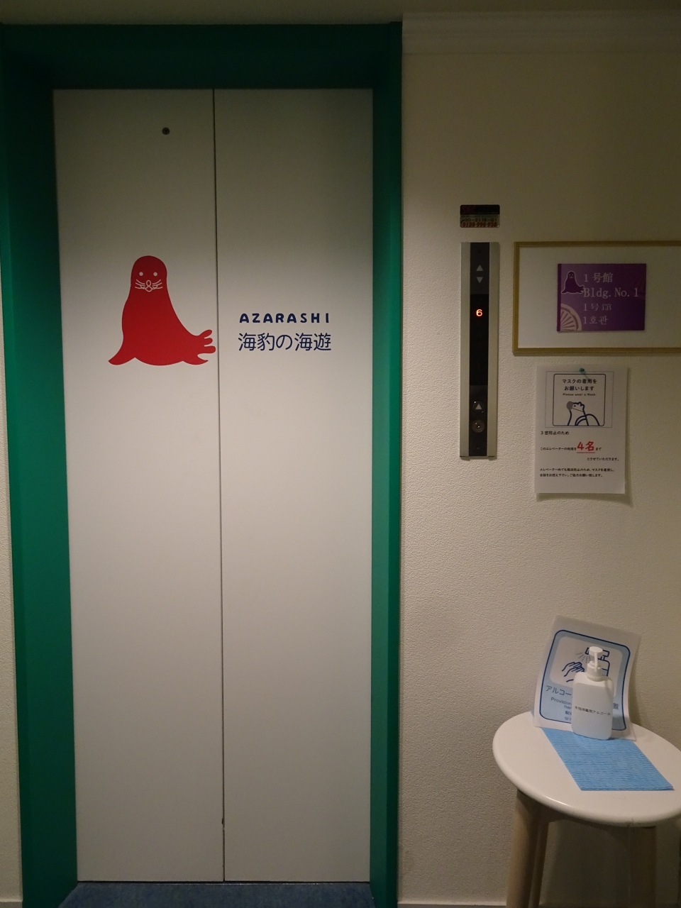 廊下には知床の自然動物の写真が並び、エレベータもそれぞれ異なる生物のイラストがあって、可愛らしいおもてなしです。