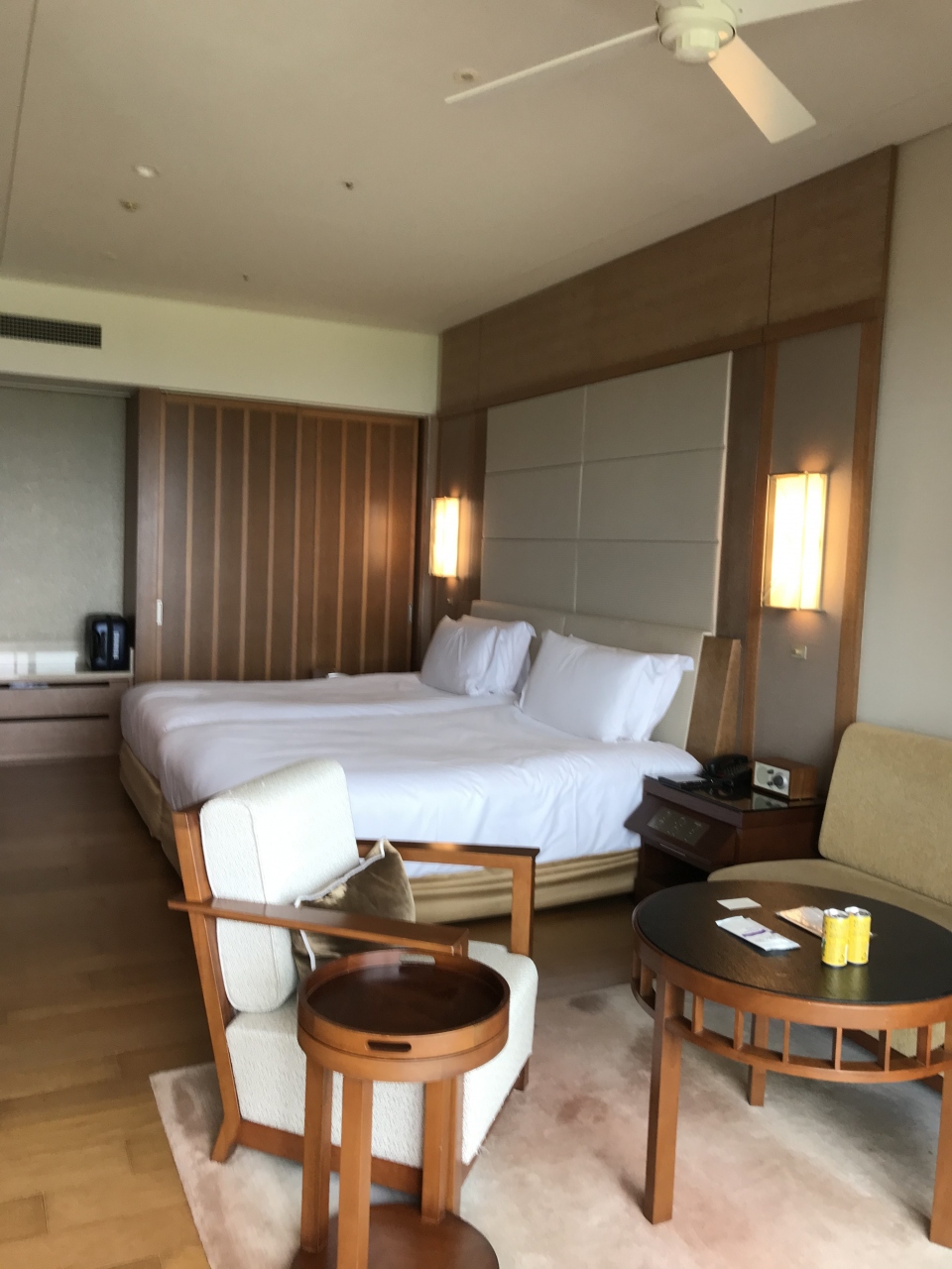 ベイデラックスルームに2泊しました。部屋は、オーシャンビューで、遠くの伊江島まで見えました。また、丘の上にあって周囲に建物が無いので、夜は綺麗な星空が見られました。