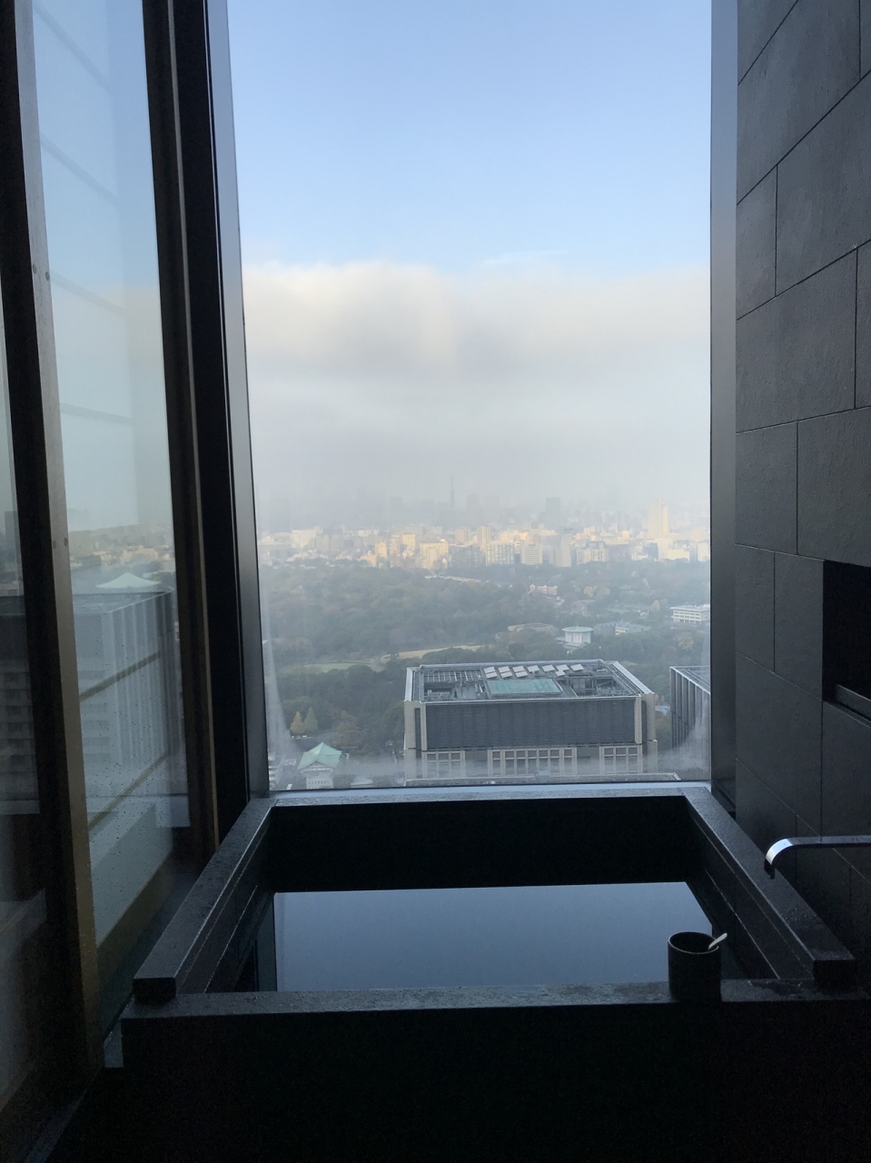 高級リゾートホテルを展開するアマンが初めて都市部に進出したのが大手町のアマン東京です。標準的な客室でも70平米以上の広さで、和を意識した内装はシンプルモダン、アマン東京のテーマカラーであるブラックのクッションがアクセントになっていました。宿泊した部屋からは皇居や武道館、新宿のビル群が見渡せて、紅葉した木々が美しく、素晴らしいホテルステイを楽しむことができました。