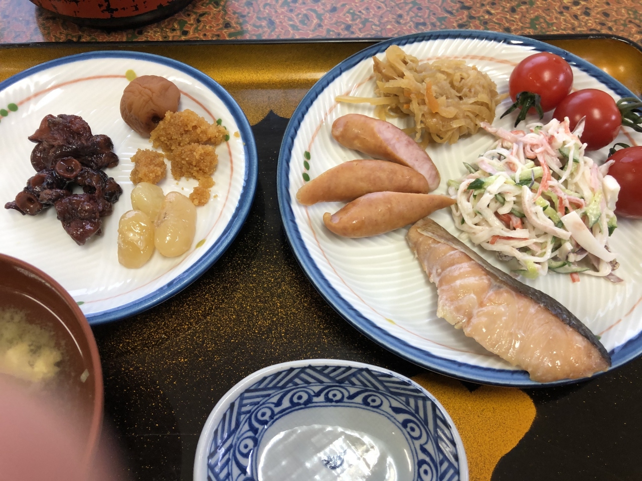旅館と民宿の中間にあるような宿ですが、親子二代の漁師の宿というだけあって、夕食は海鮮づくし。朝食はバイキングスタイルですが、コスパ良好です。