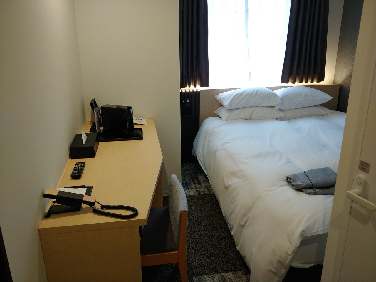 大通公園と狸小路の間にある新しいホテルで初めて利用しました。部屋それほど広くはなくこじんまりしていますが寛げました。朝食は新型コロナの関係でセットメニューでの提供で、スタッフの方がこまめに消毒作業を行っていました。チェックアウトが11時だったのでノンビリ出来ました。