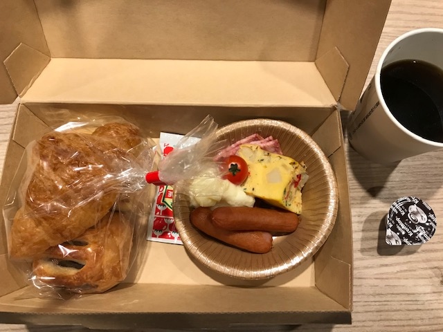 コロナ対策の朝食はお弁当になっていました。
