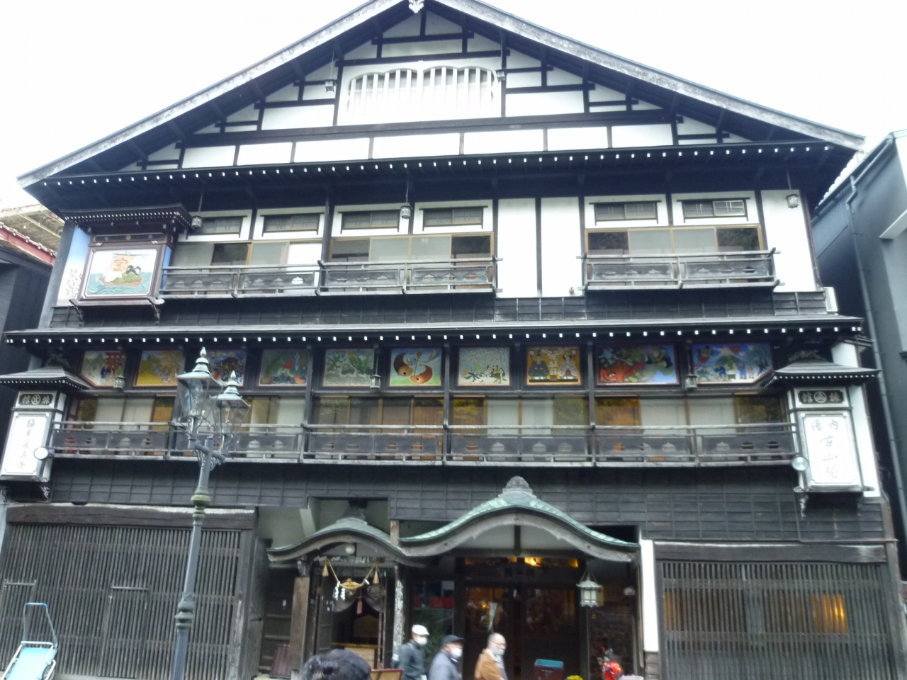 本館の雨戸の戸袋上部に鏝絵(こてえ)という左官職人が色鮮やかに日本の四季などを描いたな絵画が掲出され、素晴らしい。