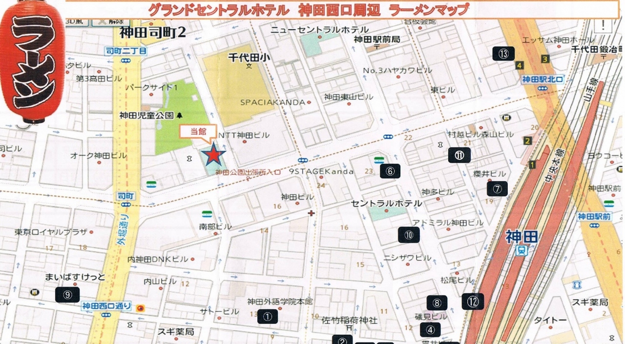 フロントにホテルと神田駅界隈の手作り地図と、同地区のラーメンマップがあり便利です。
