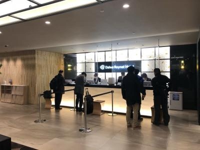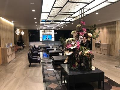 フロントは2階、広々しています。駐車場の入り口がある裏通りは一方通行なので注意を。