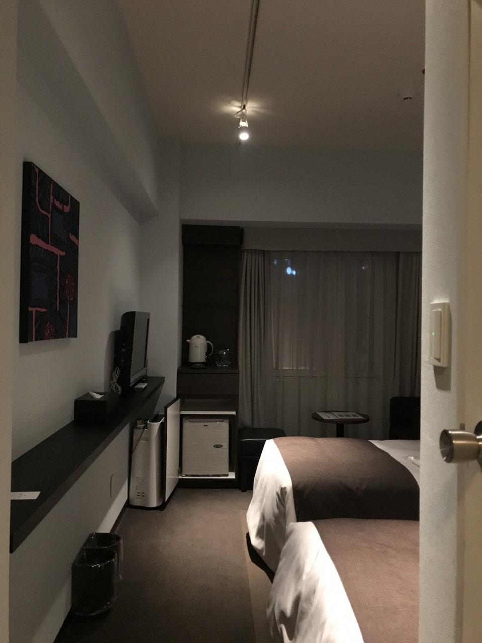 新橋駅の銀座口から徒歩で5分弱ととても便利な立地です。部屋は水回りが特に古いです。温水洗浄便座は松下製(Panasonic ではない)で使用するまでにスタンバイの時間がかかり、水圧もチョロチョロという感じで、ここは新しいものに入れ替え希望です。とはいえそれ以外は、かなり努力している感じでUSBソケットもあるし、コーヒーはドリップパックだし、マットレスはフランスベッドの硬めで自分には良く合いました。窓から見えた景色が独特。耐震工事のあとが見え、これに関する案内も置かれていて好感が持てました。フロントは二階です。ここに宿泊者用のラウンジがあり、ブラシやコットンなどのアメニティ類と無料で利用できる飲料のマシン、雑誌が置かれていて便利でした(途中でマシンが故障してしまい、ほとんど活用できませんでしたが)。