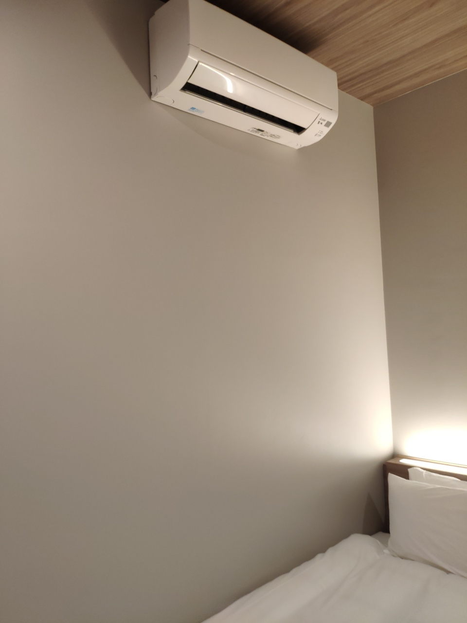 部屋のエアコンが、ふつうに家庭にあるようなエアコンで、窓の外には室外機が置いてあった。