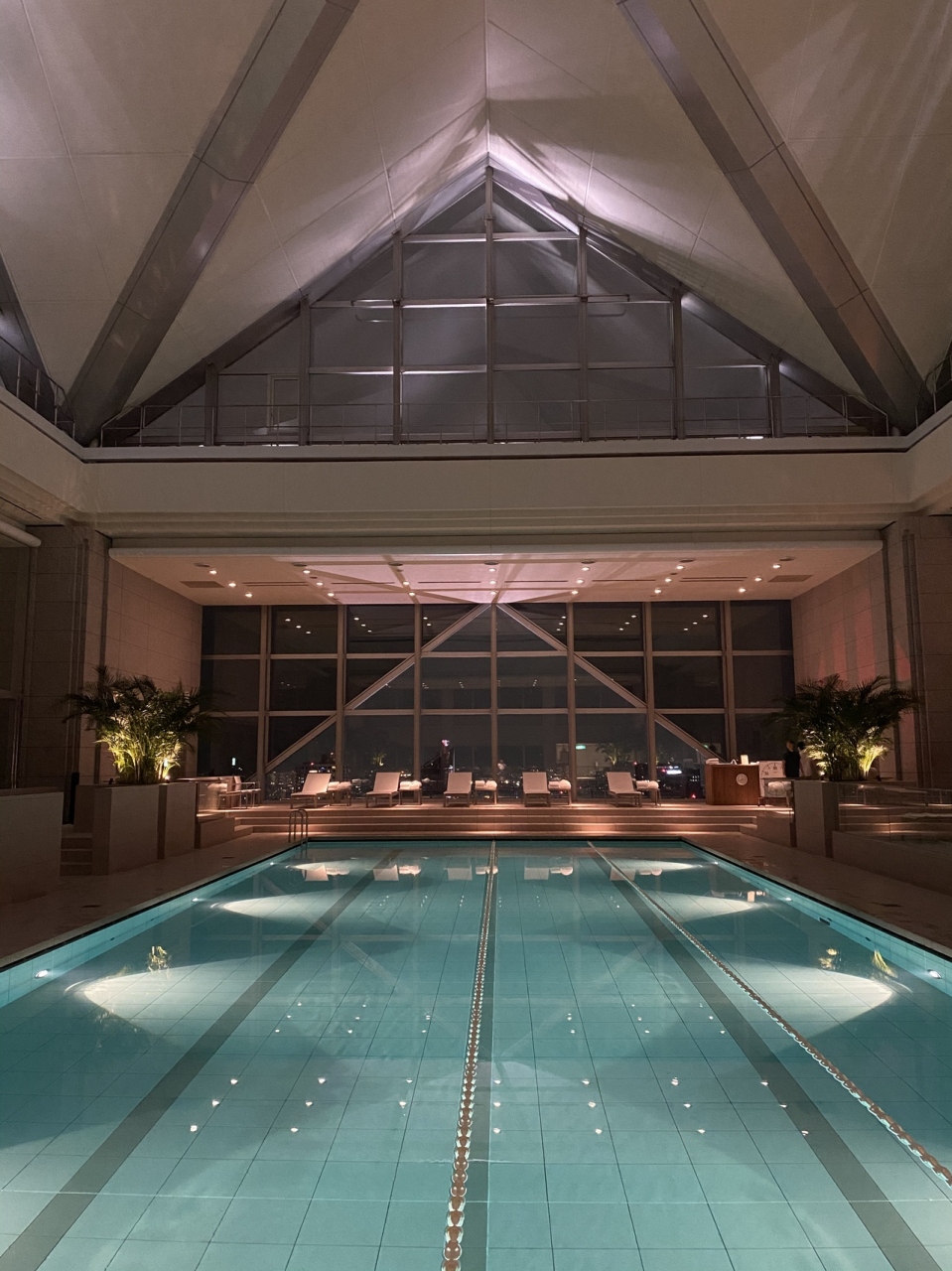 クラブオンザパーク内に屋内プールが完備されています。場所は47階。室内ではありますが、天井が高く且つ四方を窓ガラスに囲まれており、開放感は抜群です。施設自体は会員制ですが、宿泊客も無料で利用することが出来、到着した日の夜と、翌日の午前中に利用しました。夜は効果的なライティングで何となく幻想的。窓際に行けば夜景を眺めるも出来ます。日中は窓からの採光で、解放感から言えば昼間の方が良いかも。コロナ渦対応で人数制限をしているというのもあってか、人もまばらでなんとも贅沢な気分でした。