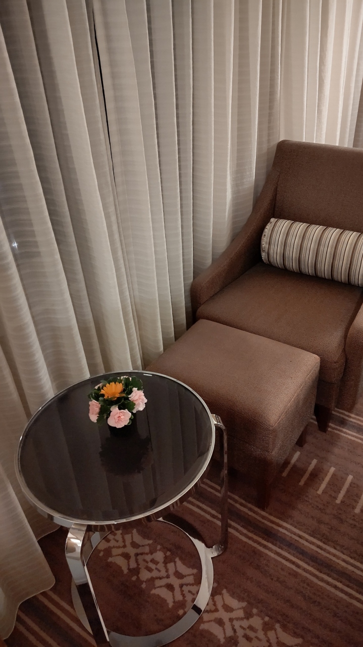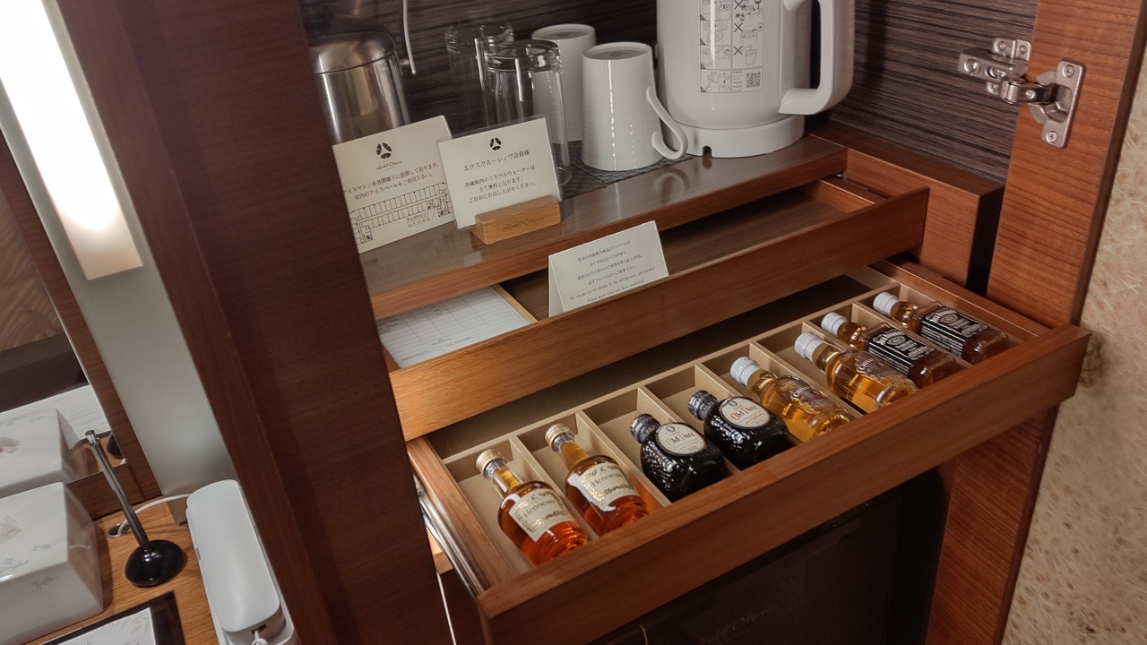 ワンハーモニー特典で13階のダブルルームにアップグレードされ、部屋の鉱水と冷蔵庫内の鉱水合わせて4本は無料、更にウェルカムドリンクチケットをいただきました。