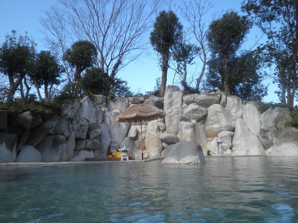 露天は広い! ただ、晴天ながら冷え込みが厳しい日で、かなりぬるいお湯でした。でも、広く明るい露天でのんびり入るのは本当に気分が良かったです。