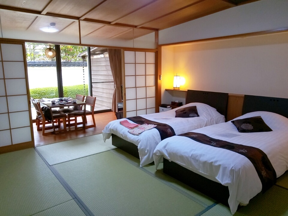 古いだけあって 敷地が広く お庭がとても素晴らしくて お部屋からは石庭 大浴場からは滝のあるお庭が楽しめます。