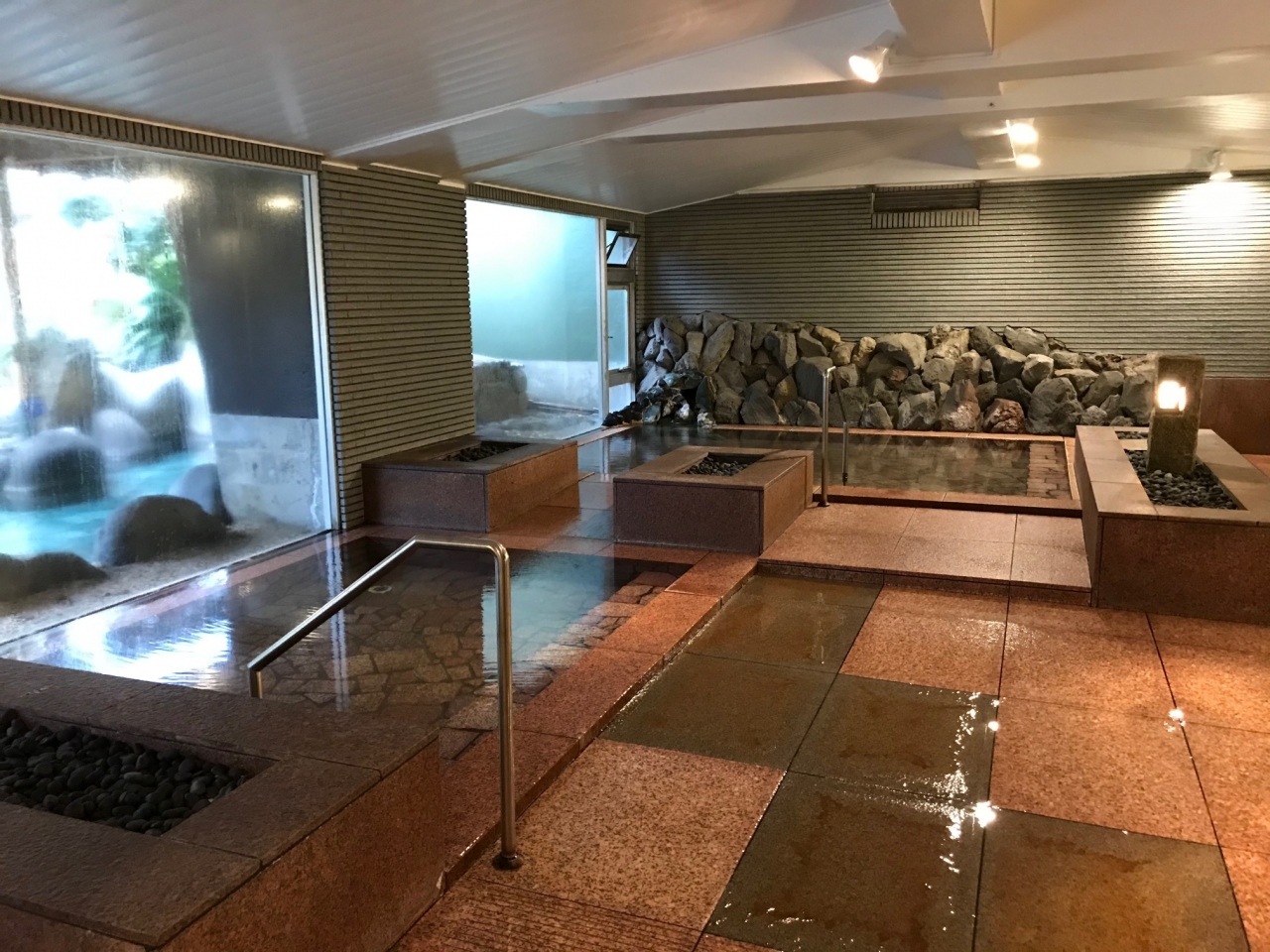 お風呂は温泉大浴場と露天風呂、さらに檜の貸切露天風呂を堪能できました(泉質は食塩泉)。