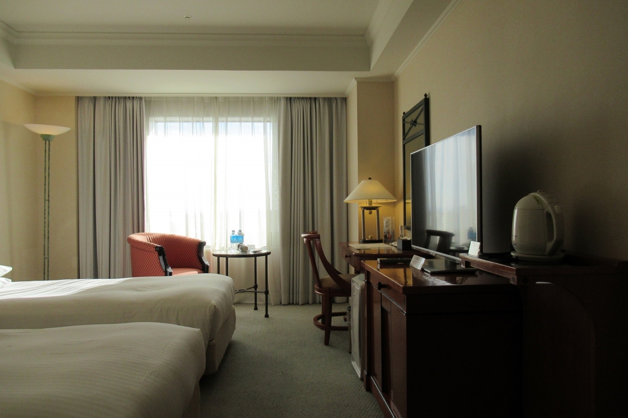 ホテル到着は11時半過ぎ、チェックイン時間までどうしようかと思っていると、フロントデスクでは「お部屋の用意ができていますので」ということで客室に入ることができました。3時間以上ものサービスは、日本のホテルではめずらしいと思います。もちろん条件次第ではありますが、接客業としての心得たりです。再びの利用を考えました。またOne Harmony会員としてのレイトチェックアウトの特典に加え、公式㏋からの予約だとドリップコーヒー、バスソルト、レストラン20%割引券、朝刊など特典満載ですので、利用しない手はないですね。バブル期の建物だけあって公共エリアは黒・赤・金色でキラキラなのも懐かしいですし、客室の質感も高めで景色も良いですよ。