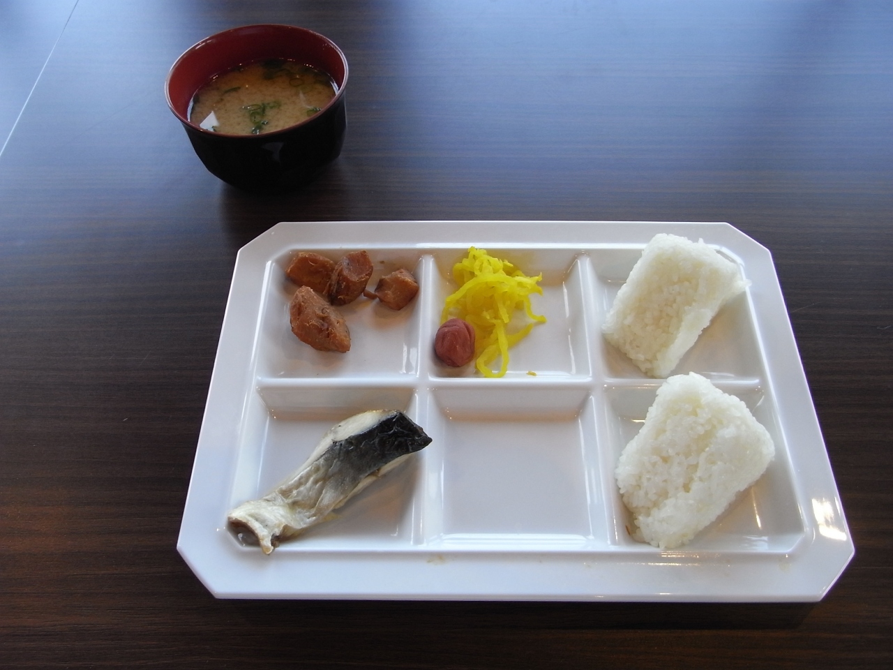 朝食は無料ですが、”おにぎりと漁師の粗汁”と成ってますが名前ばかりで、おにぎりはいつ握ったのか判らないほど硬くてバリバリ状態で食べれたものではない?、粗汁も名ばかりで小さな粗がお椀に入れただけのもので粗の出汁の味はしません?。