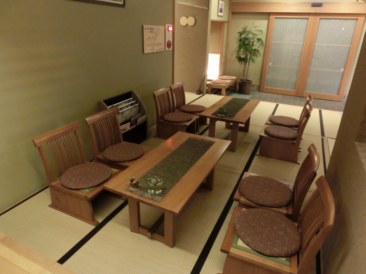 観光スポット青い池からも近い白金温泉にあります。玄関を入ると、館内用のスリッパは用意されてなく、畳のロビー、白樺のフローリングの廊下や階段を素足で歩きます。