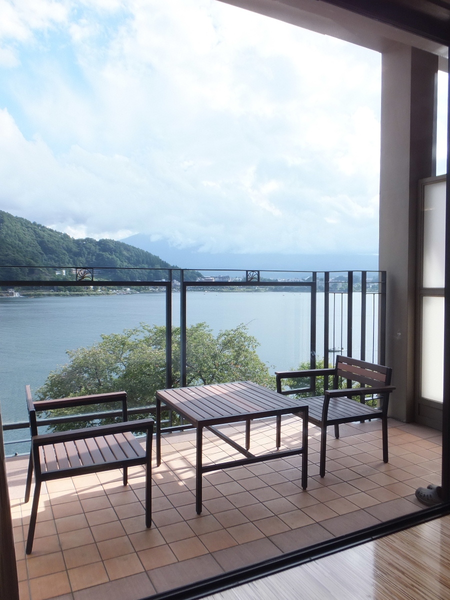 とにかく、河口湖、その奥に富士山と、