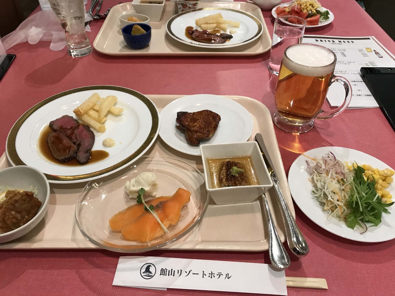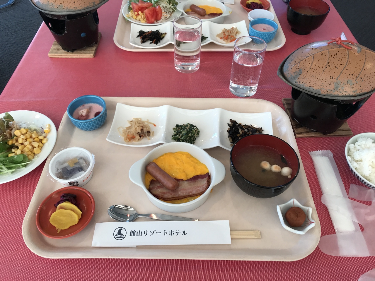 徒歩圏内にはコンビニやスーパーは有りませんのでホテル内の自販機または売店。朝食は、コロナ対策で和食セットメニュー、サラダのみ自分で取るサービスになりました。