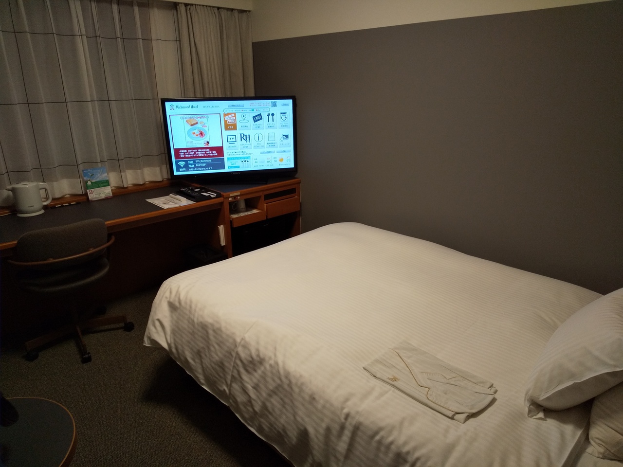 館内は全国展開のホテルチェーンだけあって、コンセントやテレビの大きさなど期待以上でした。