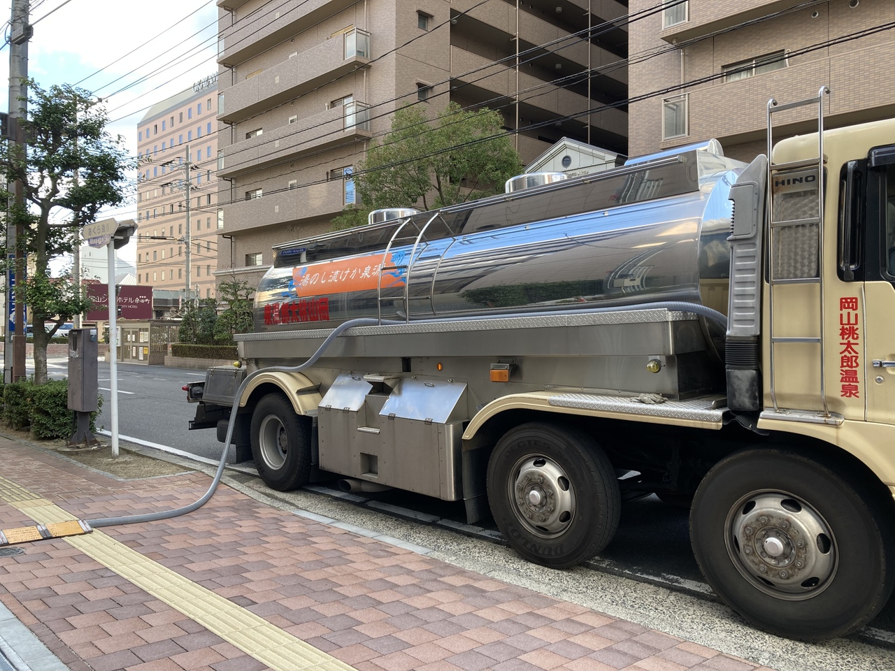 大浴場は大きくはないですが、毎朝、タンクローリーで温泉を運んで来ています。