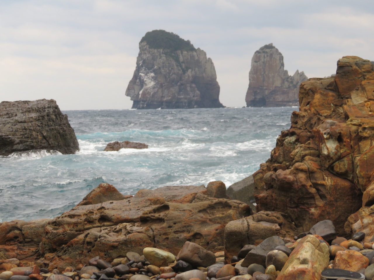 鷹ノ巣、ローソク岩もまじかに行ってタッチできる。