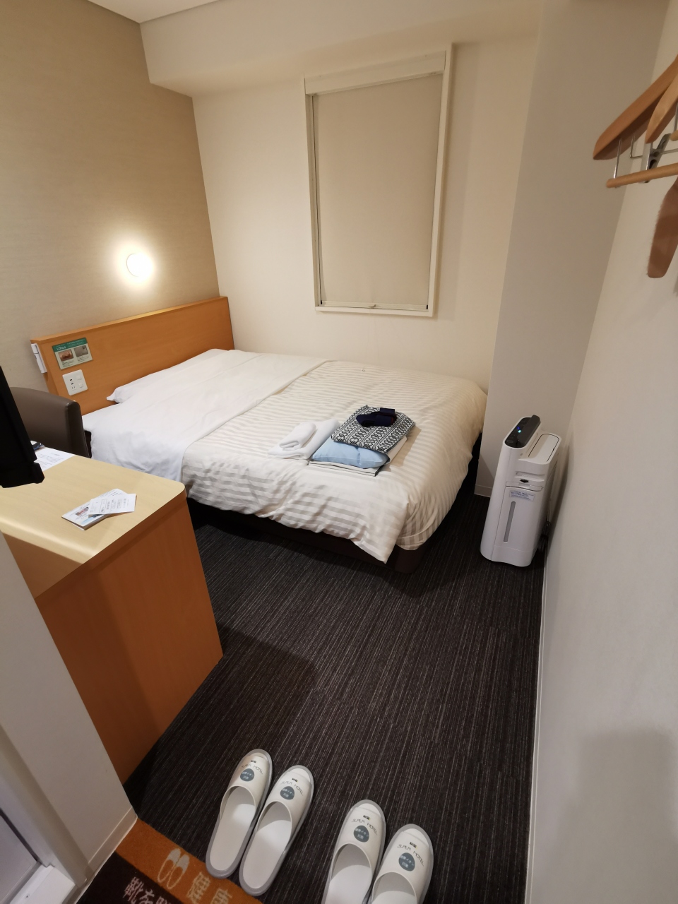鳥取・島根のドライブ旅行。松江市内観光したあと宿泊は「スーパーホテル島根 松江駅前」です。全国どこでもありますので安定して安心です。ベットはダブルのお部屋。狭いですが寝るだけですので問題無し。近所には飲み屋さんが多数あって便利です。朝食のバイキングは種類が少しさみしいです。