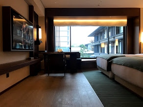 京都国際ホテルの跡地に建設された161室のホテル。大昔は三井総領家(北家)の邸宅があった場所で三井不動産のフラッグシップホテルとなります。二条城のすぐ近くですが、入口は二条城側ではありませんので、ぐるっと回る必要があります。入口はこちら、的な案内があってもいいのではと感じました。外装は平等院鳳翔館と同じ建築家の栗生明氏、中庭などの庭園はランドスケープデザイナーの宮城俊作氏が手掛けたもの。内装は香港のホテル、アッパーハウスをデザインして一躍有名になったデザイナーのアンドレ・フー氏やレストランやサーマルスプリングのデザインをされたstricklandの空間を見るのを楽しみにしていました。