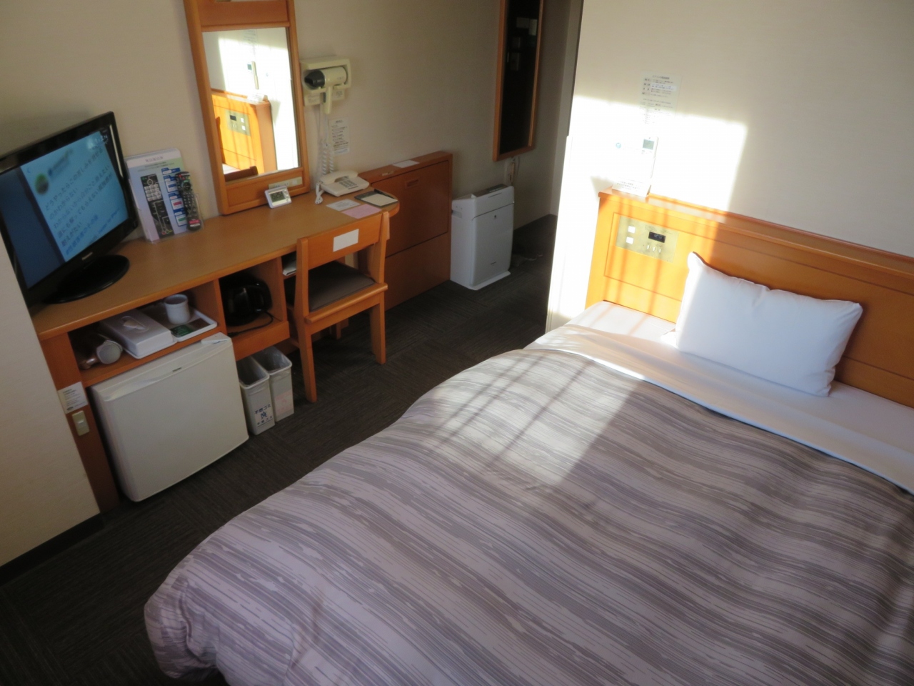 シンプルな部屋ですが、快適でした。空気清浄機付きで加湿装置も完備しているので乾燥している冬のこの時期も部屋の中は、快適でした。