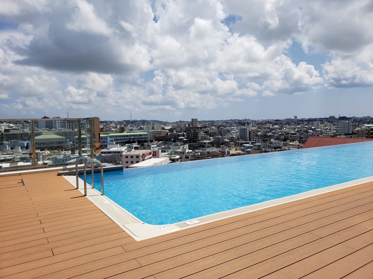 都ホテルから新しくなり、初めて利用しました。屋上のプールが売りのようで、見に行ってみましたが、まるで落ちてしまいそうな感じがしました。見晴らしもよく、開放感抜群でした。部屋はシックで落ち着いていますが、スーツケースを開くスペースがとりづらかったです。