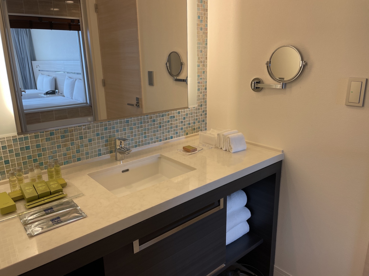 お部屋は広くて、洗面所やバスルームも広くて清潔なので居心地は良いです。