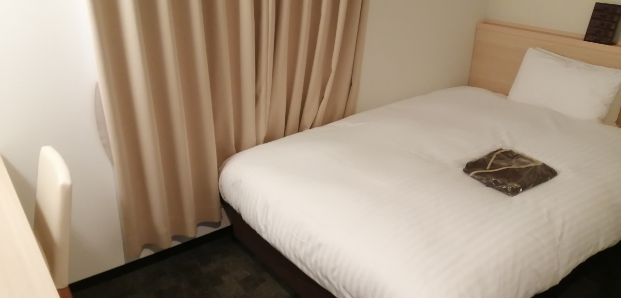 部屋は綺麗ですが、狭く他のビジネスホテルチェーンのように荷物の置き場所の工夫がなく、使い勝手が余り良くない。部屋の窓が型板ガラスで外が全く見えなく、閉塞感が有る。大浴場があるのが魅力です。小さなつぼ風呂が屋外にあるのですが、板で塞がれていて空は見えません(何故?)