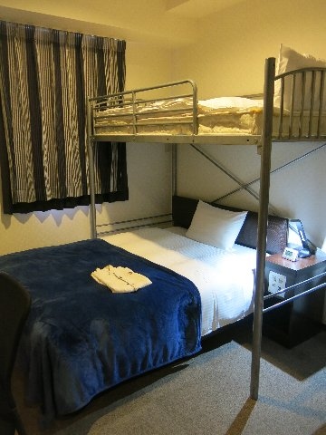 ダブル向けのルームですので空間に余裕があります。小さなテレビやUSBコンセントが無いなど施設面ではもう1歩ですが