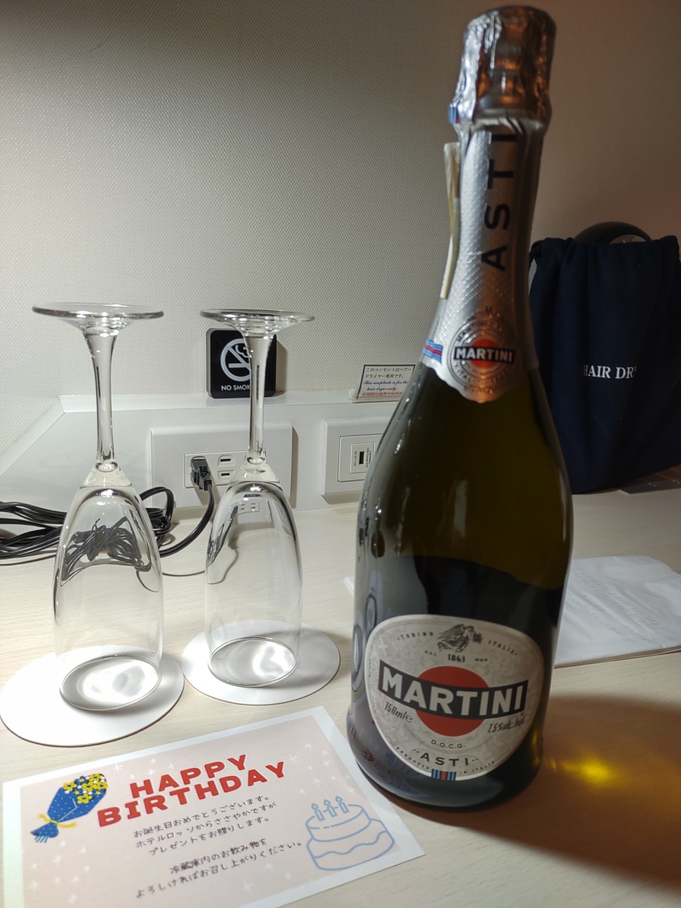 以前泊まって良かったのでリピートしました。誕生日お祝いの大きなスパークリングワインを、サービスでお部屋の冷蔵庫に用意してくださっていて、嬉しかったです。朝食はおかわり自由で、カレーライス、キャベツとツナのサラダ、ゆで卵、パン2種、リンゴジュースで、コーヒーやお茶は終日飲めます。きれいですし、気に入っています。