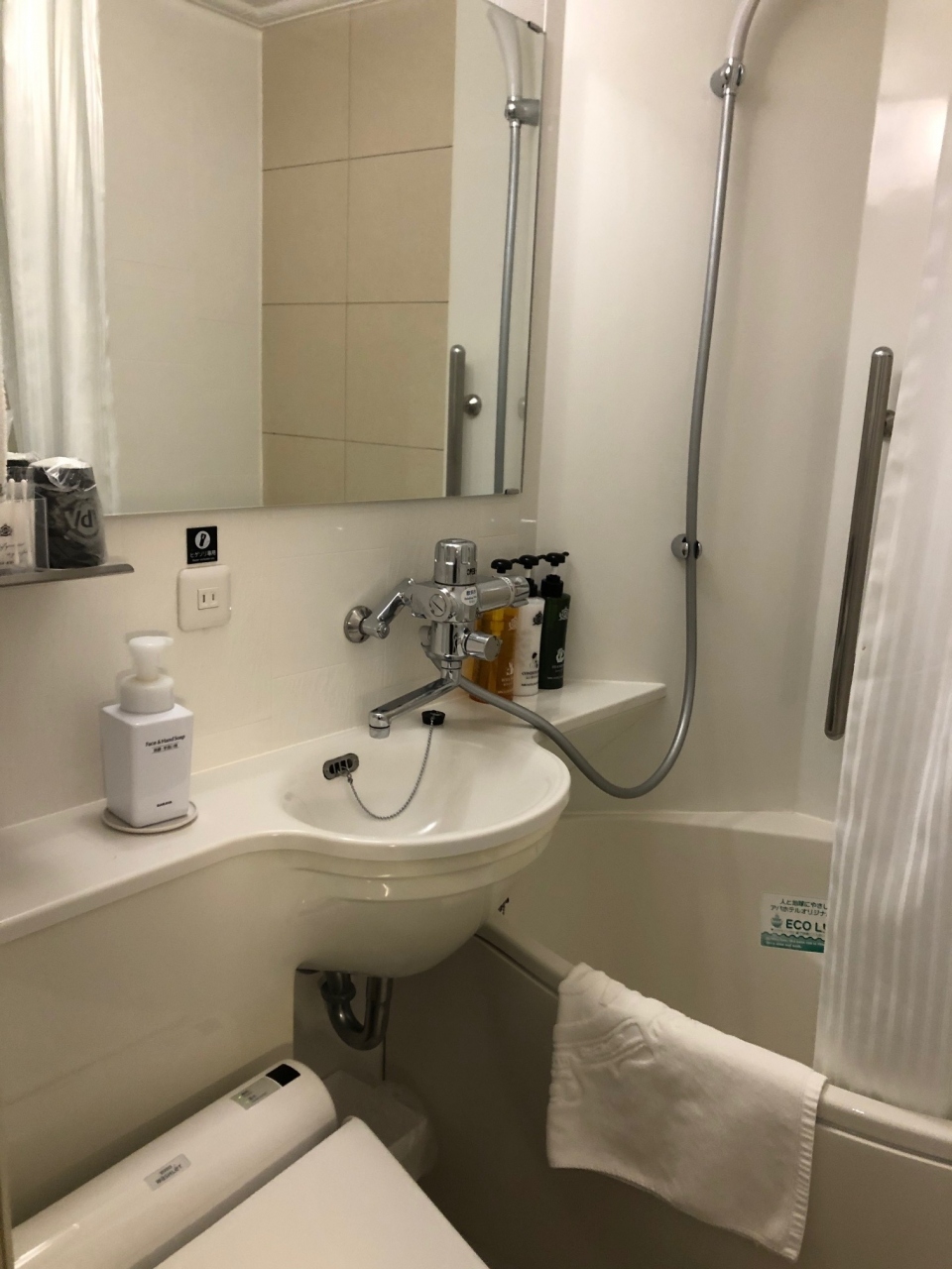 九段下駅近くのチェーンのホテル。入口は階段がありスロープなし。スーツケースは持ち上げる必要あり。水道橋まで近く、食事は便利、東京ドームも徒歩圏内。ホテルの前にコンビニがある。部屋はアパの割には少し狭く感じる。