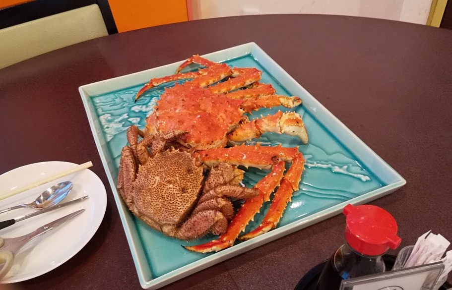 こちらではコロナ対策万全で手の消毒の後ビニール手袋装着しバイキング+セットメニューでした。