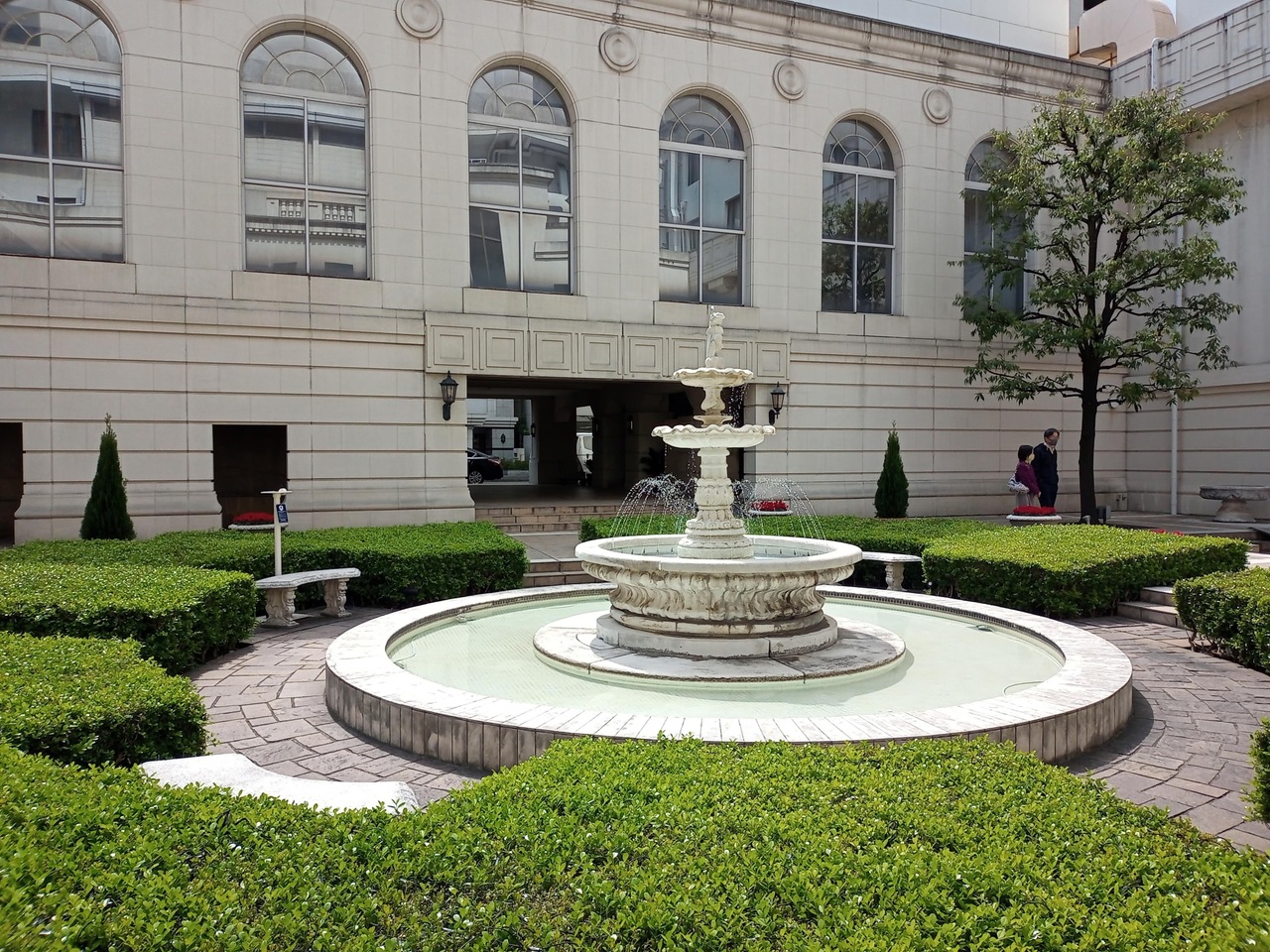 中華街から山下公園へ向かう途中に、本館中庭の噴水を眺めてから、本館ホテル内へ。