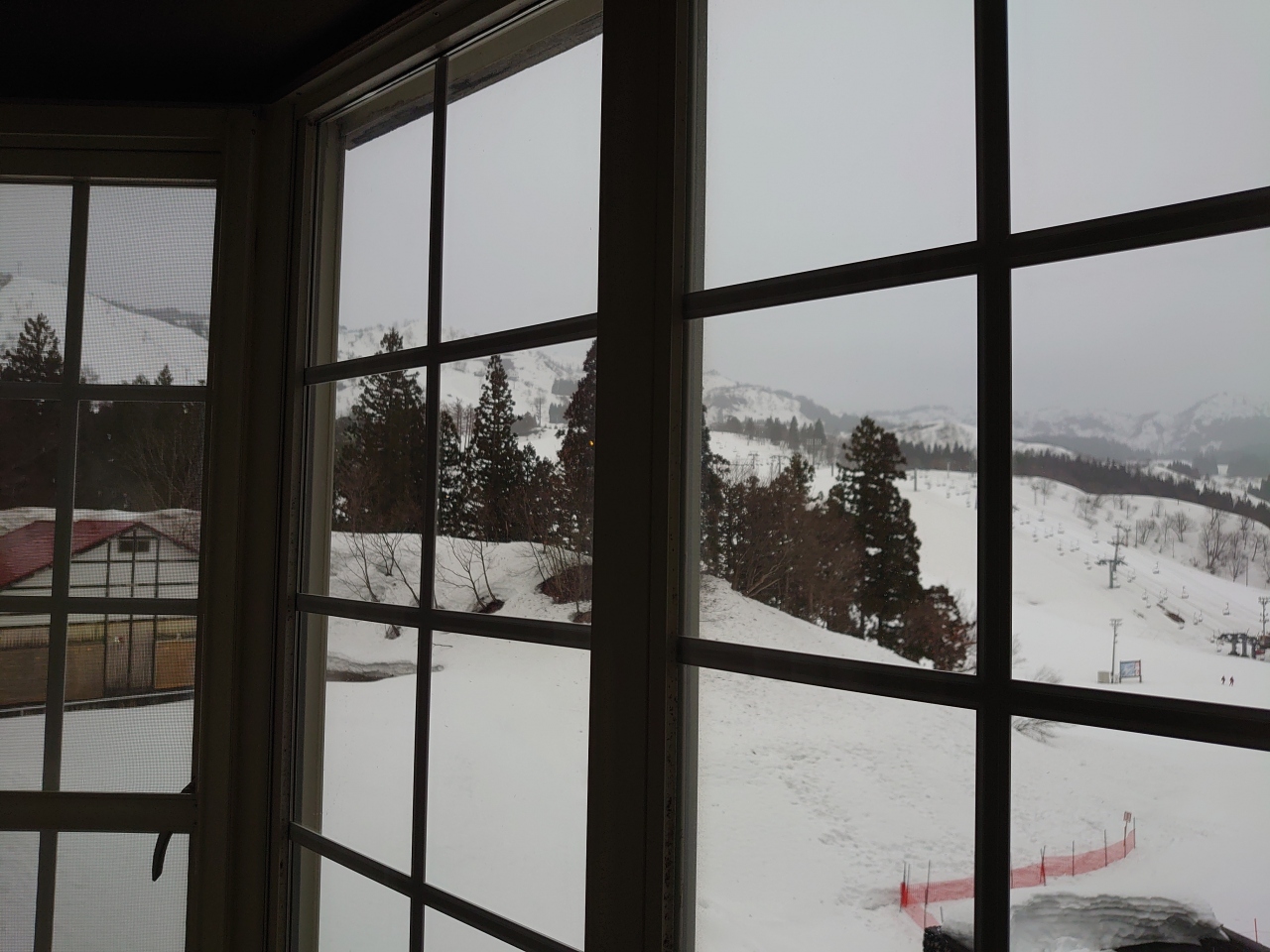 ゲレンデ側の部屋だったのもありますが、窓から見ると結構な積雪があるのがわかるほどでした。