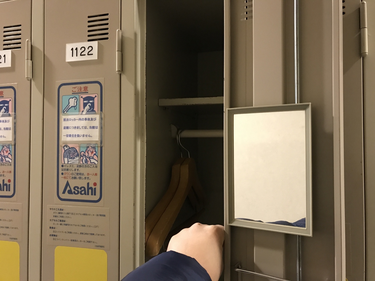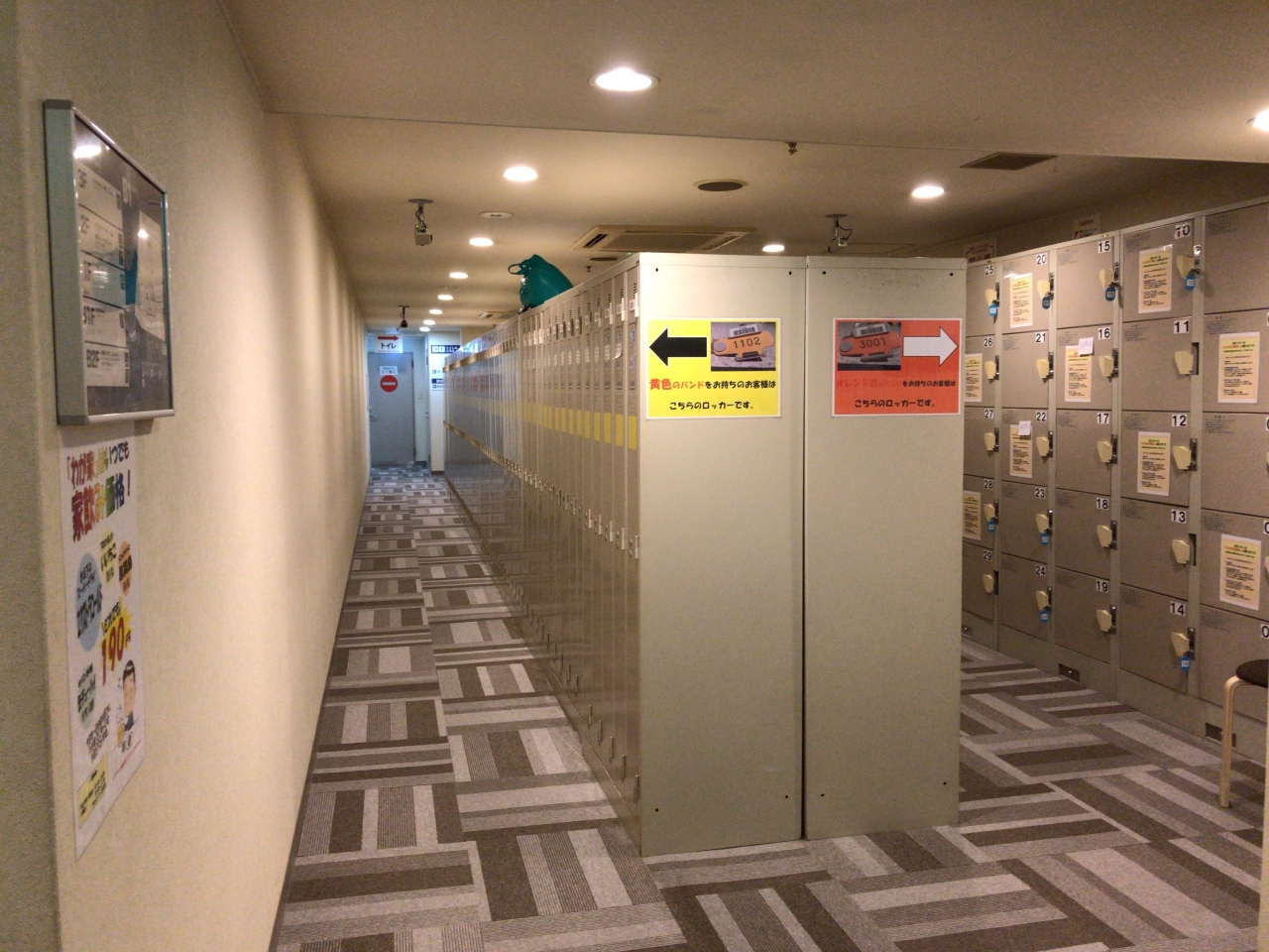 ロッカールームにあまりスペースを割けないのも分からなくもないのですが、それでも人の指5本を揃えたプラスαほどの幅しかないので、キャリーケースなどはワイヤーで鍵をつけてフロント横のスペースに保管する形になります。リュックサックなども幅が広いと収まらないので小さいものの方が良いかと。また、もう一つの注意点がカプセルエリアの床が古いのか、普通に歩いているだけでかなりミシミシと音が鳴ります。悪気が無くても。これらには注意が必要です。建物内は各所にフリースペースがある他、地下にはなりますが大浴場がありゆったりと疲れを取ることができました。