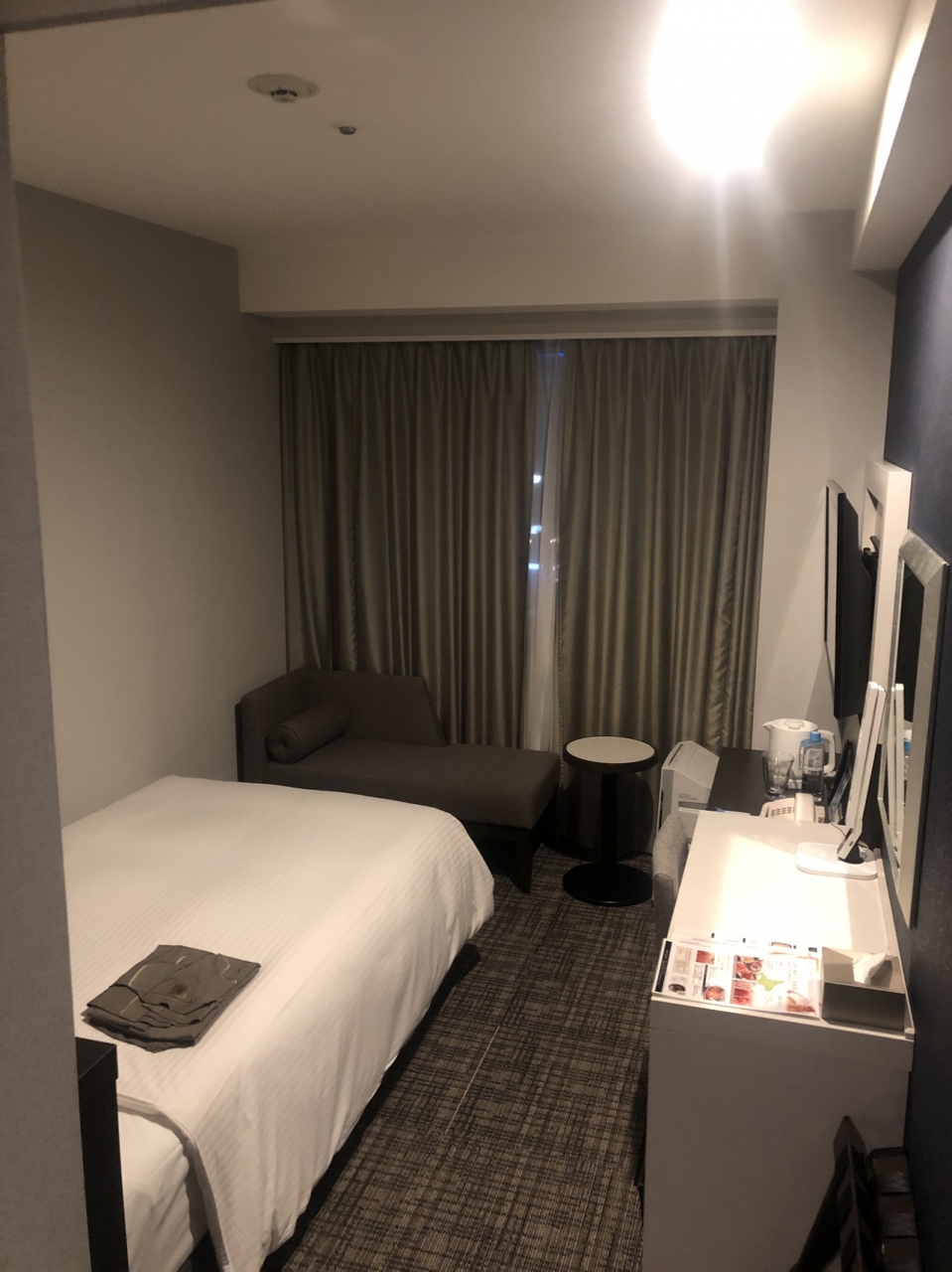 周りの同等ビジネスホテルに比べ割高。壁が薄く、隣のイビキが聞こえストレスです。また近くの部屋のドア開閉音とバタンという振動が部屋に響き、夜中に2度ほど起きてしまいました。アパ並1泊3,500円なら次はあり。